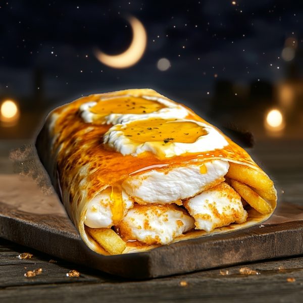 Composé d’une galette garnie de frites, de tenders croustillants, de sauce fromagère maison, et surtout d’un duo fondant de fromage de chèvre et de miel doux pour une explosion de saveurs sucrées-salées.
